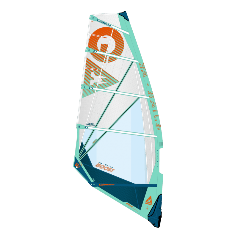 Une construction à cinq lattes puissante et contrôlable définit le Boost, stabilisé par des rubans radiaux de carbone s'étalant à partir du rayage pour maintenir un profil verrouillé. Le résultat est une voile qui se sent forte et fiable, mais suffisamment réactive pour gérer les manœuvres dynamiques et changer les conditions avec facilité.